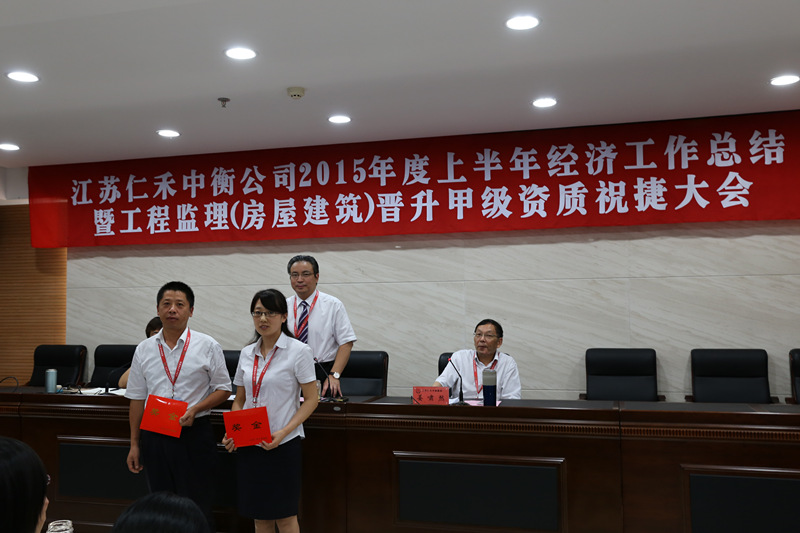 7月18日上午,江苏仁禾中衡公司上半年经济工作总结暨工程监理(房屋建筑)晋升甲级资质祝捷大会在公司九楼会议室隆重召开,公司全体员工,部分见习人员170多人参加了会议。