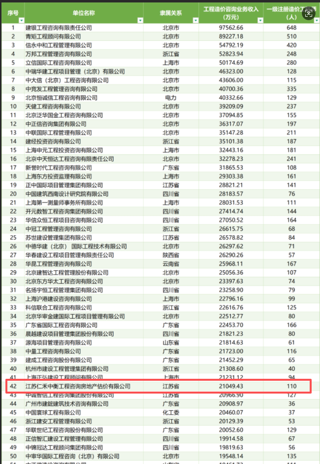 集团工程公司荣获全国百强企业第42位—2024年全国工程造价咨询企业收入百强发布