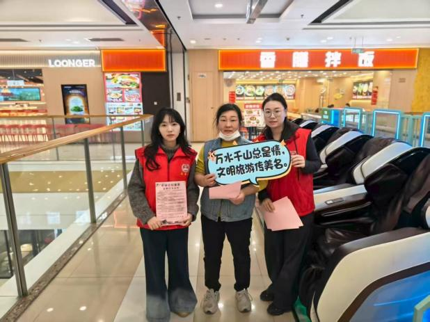 为进一步倡导文明旅游新风尚,引导广大游客树立 “文明出游、人人有责”的意识,10月 30日下午,集团志愿者服务队在万达广场开展“文明出游 从我做起”主题志愿活动,以实际行动倡导文明旅游新风。