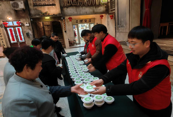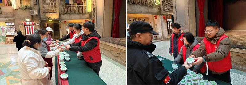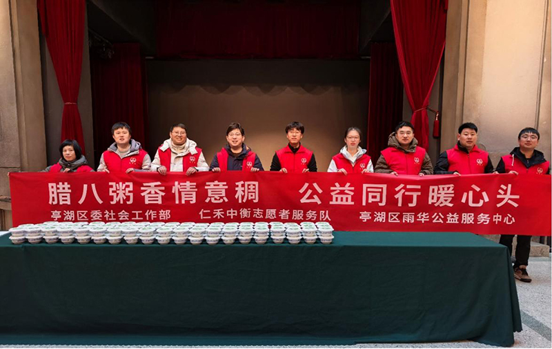 腊八送温暖,粥香情更浓。1月26日,集团志愿者服务队携手亭湖区委社会工作部、亭湖区雨华公益服务中心,在建军路竹林大饭店共同组织开展了“腊八粥香情意稠·公益同行暖心头”腊八节主题志愿服务活动,为寒冬中坚守岗位的安保人员、环卫工人、快递小哥及过往市民送上热气腾腾的腊八粥与节日祝福,以实际行动传承传统文化,传递温情。